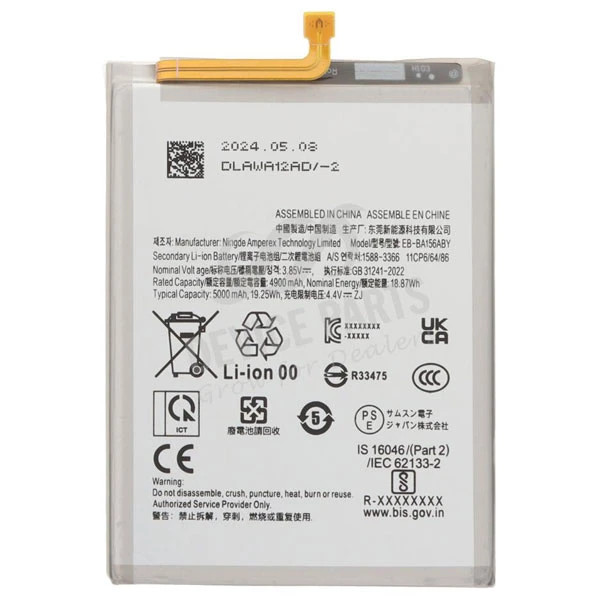 مدل باتری استفاده شده در A15، EB-BA156ABY است. این باتری لیتیوم-یونی بوده و به صورت اختصاصی برای گوشیهای سری A سامسونگ طراحی شده است.
