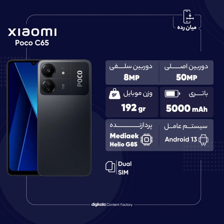 گوشی موبایل شیائومی مدل Poco C65 دو سیم کارت ظرفیت 256 گیگابایت و رم 8 گیگابایت
