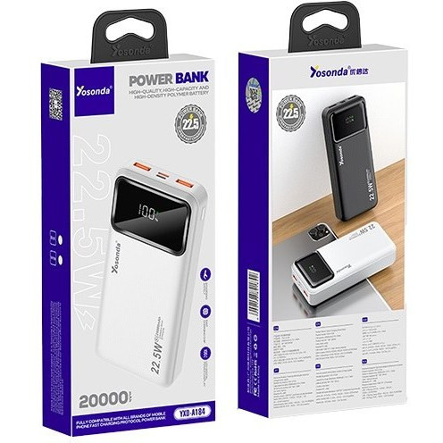 پاور بانک یوسوندا 20000 میلی آمپر ساعت، 22.5 وات یک دستگاه قابل حمل و شارژ سریع است که می تواند تلفن های هوشمند و سایر گجت های شما را شارژ کند. دارای باتری پلیمری با ظرفیت 20000 میلی آمپر ساعت و نمایشگر دیجیتالی است که میزان شارژ باقی مانده را نشان می دهد. از شارژ PD با حداکثر خروجی 22.5 وات پشتیبانی می کند و دارای چندین پورت برای انواع مختلف کابل است. همچنین دارای شش ماه گارانتی می باشد. این پاوربانک برای مسافران، گیمرها و هر کسی که به یک منبع انرژی پشتیبان قابل اعتماد نیاز دارد ایده آل است.